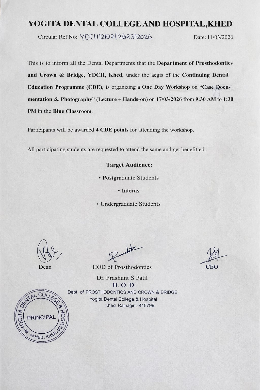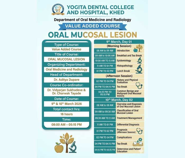 Yogita Dental College and Hospital, located in Khed, Ratnagiri district of Maharashtra, is a premier institution dedicated to excellence in dental education, patient care, and research. Established under the aegis of Shivtej Arogya Seva Sanstha, the college was founded with the vision of nurturing competent, ethical, and socially responsible dental professionals.